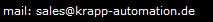 The contents of this site is thoroughly checked. Nevertheless Krapp Automation GmbH does not take any responsibility that the information is complete, correct and up-to-date. All offers remain open and noncommittal. This is especially true for direct or indirect links to third party web sites. Krapp Automation GmbH is not responsible for content of any web site that this site links to. Any liability for the use of this web site, may it be content or technical properties or for its availability is expressly excluded. Krapp Automation GmbH therefore does not take any responsibility for immediate or indirect damage, loss of data, loss of profit or missing availability due to the use of this web site or the content of it. As far as the user has the option to enter personal information (name, address, e-mail and the like) the user provides it strictly voluntary.